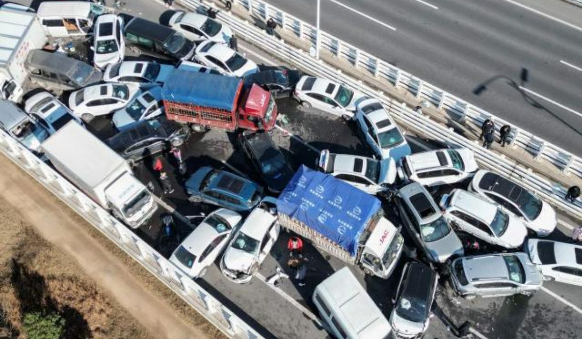 Impresionante accidente en China: chocan 200 vehículos sobre un puente