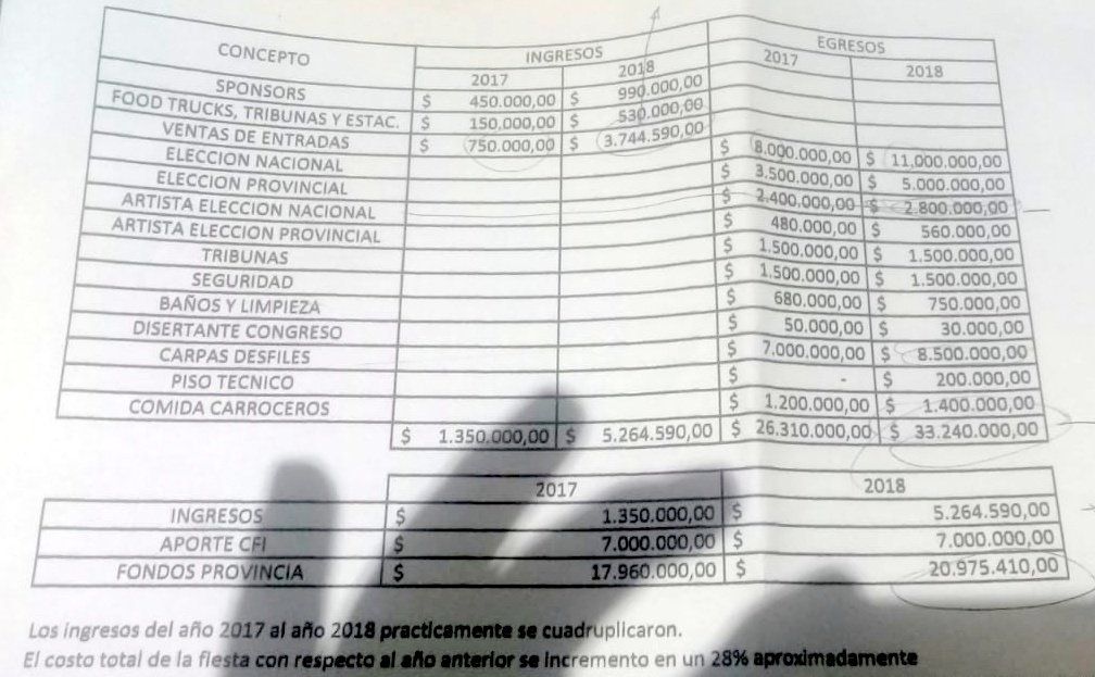 Según los datos expuestos por el gobierno, la Fiesta Nacional de los Estudiantes de este año tuvo un costo de 33 millones para la provincia, donde señalan que fue importante para solventar el gasto la inversión que llegó del CFI. Rescatan que los ingresos casi cuadruplican a los del año pasado.