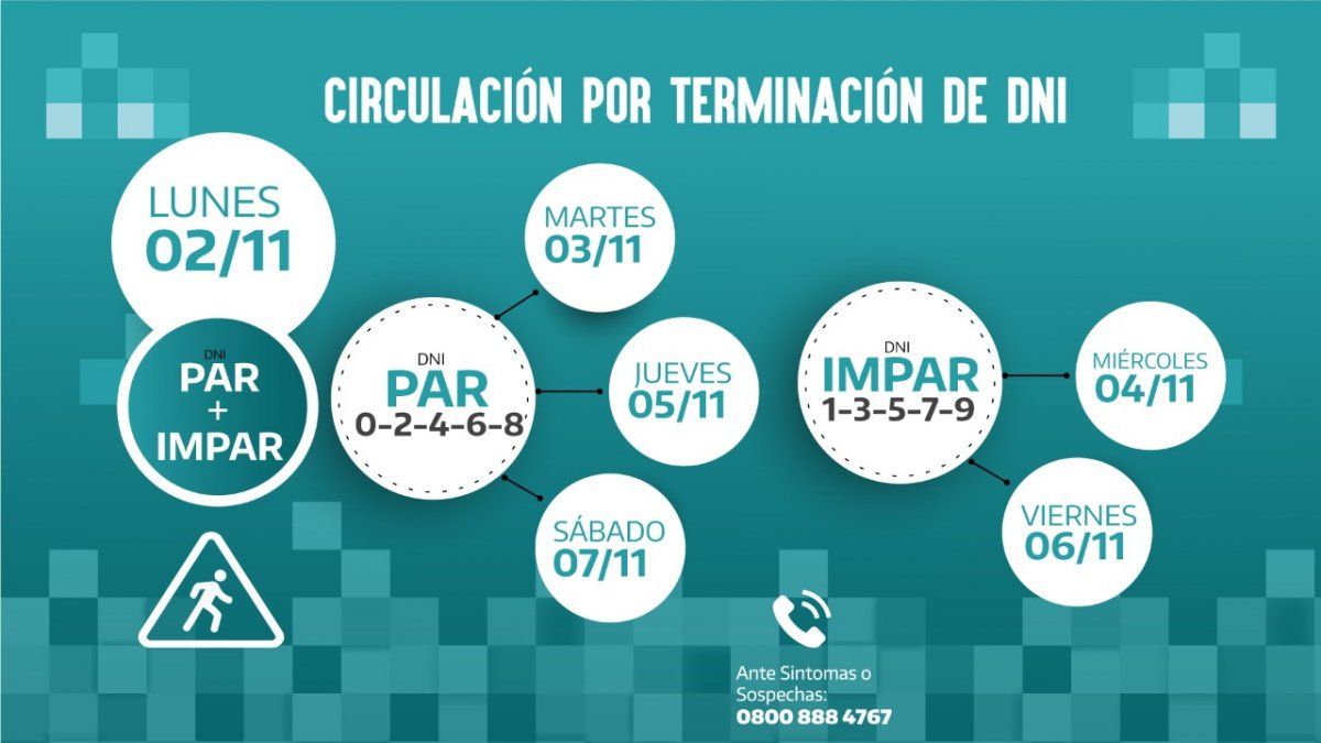 Continuando con el esquema de circulación por terminación de DNI par e impar para realizar actividades permitidas, esta semana se dispuso lo siguiente: