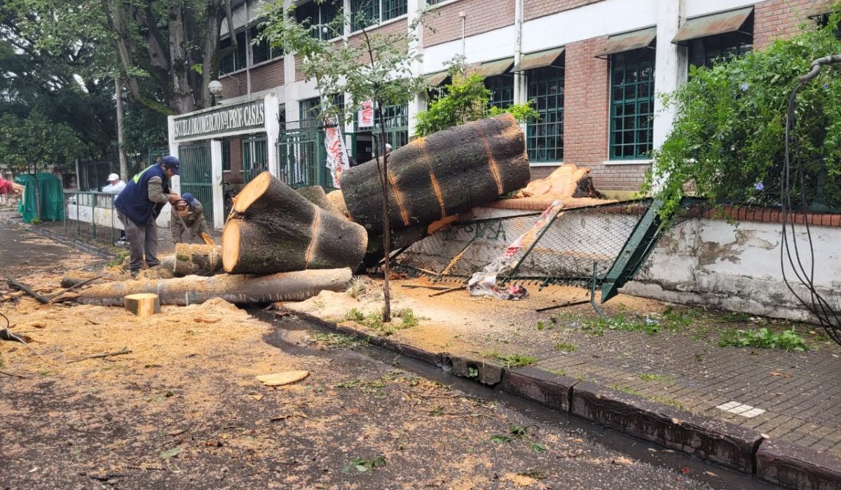 Un árbol gigante cayó sobre la Escuela Comercial Nº 1 y suspendieron las clases