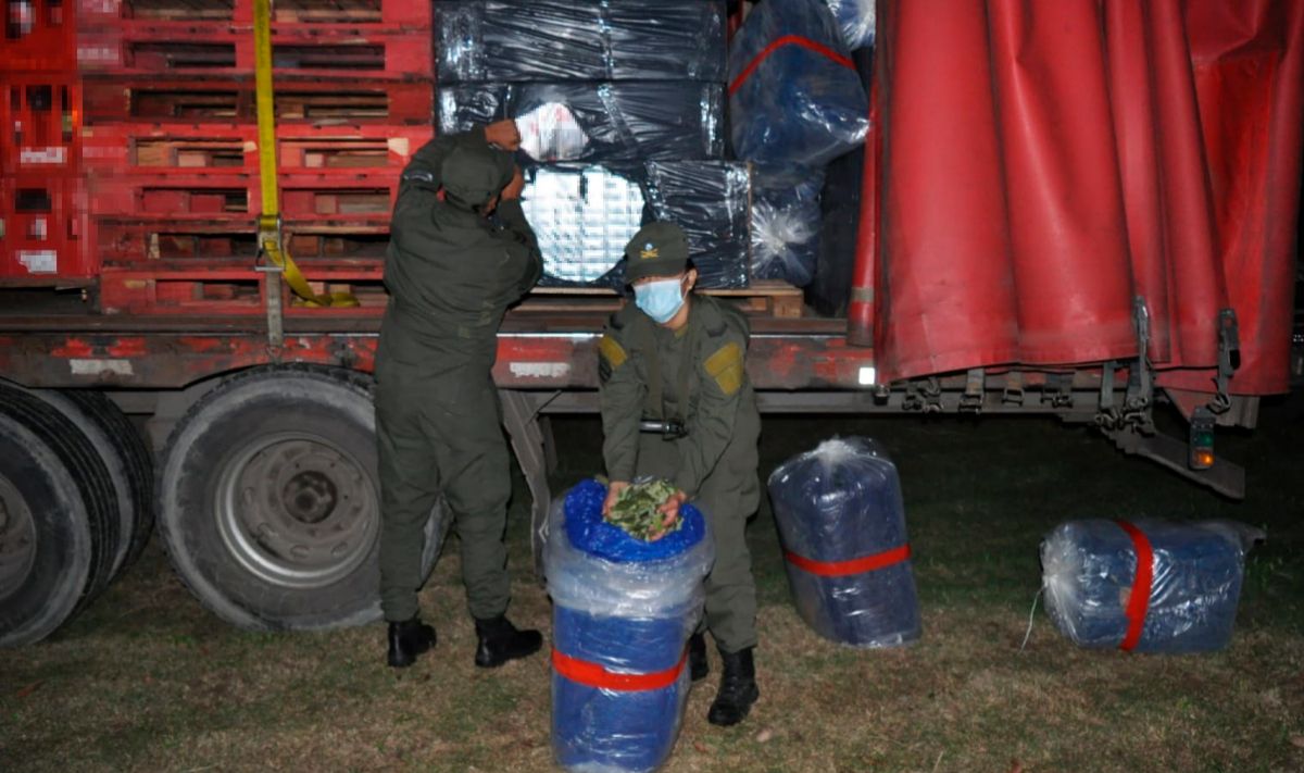- Camión ocultaba 1.282 kilos de hojas de coca y 39.900 paquetes de cigarrillos entre una carga de gaseosas.