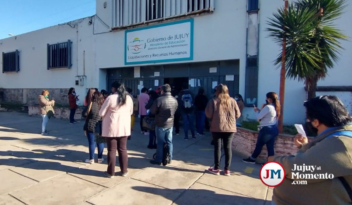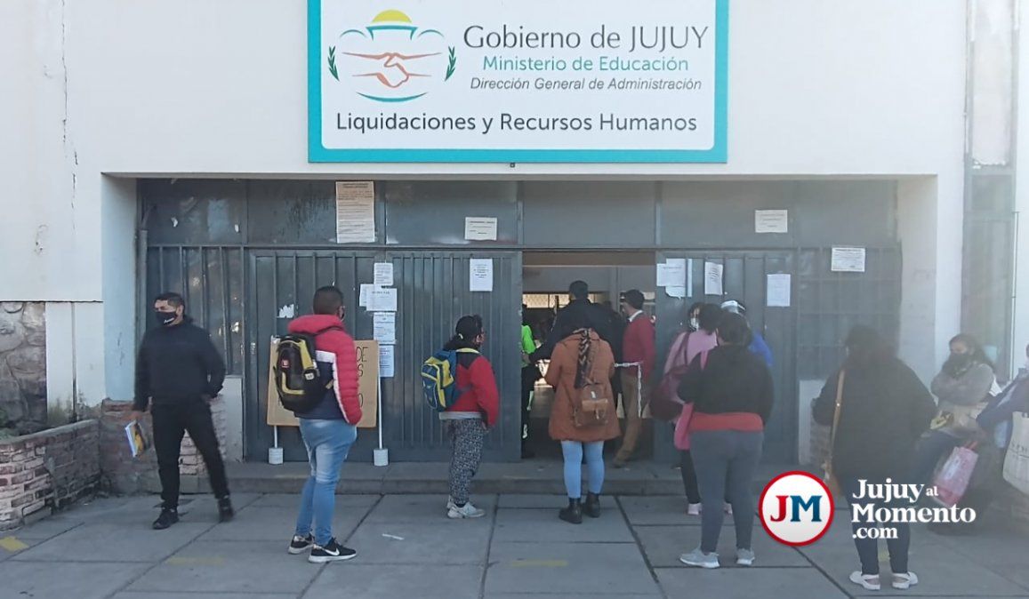 Mientras los empleados realizaban la protesta, afuera se encontraba una aglomeración de docentes que concurrieron para hacer sus trámites y no entendían lo que pasaba.