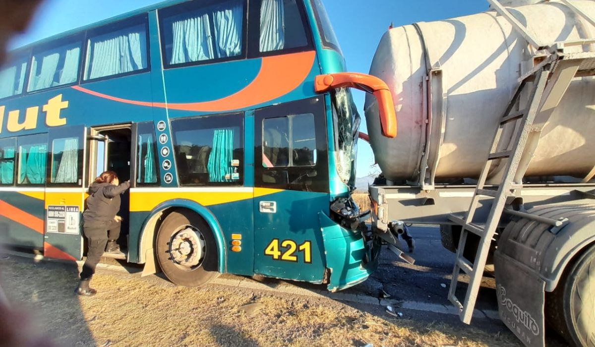 Por circunstancias que se tratan de establecer, el transporte de pasajeros colisionó violentamente contra parte trasera de un camión marca Mercedes Benz conducido por un hombre oriundo de la provincia de Tucumán, que circulaba con acoplado.