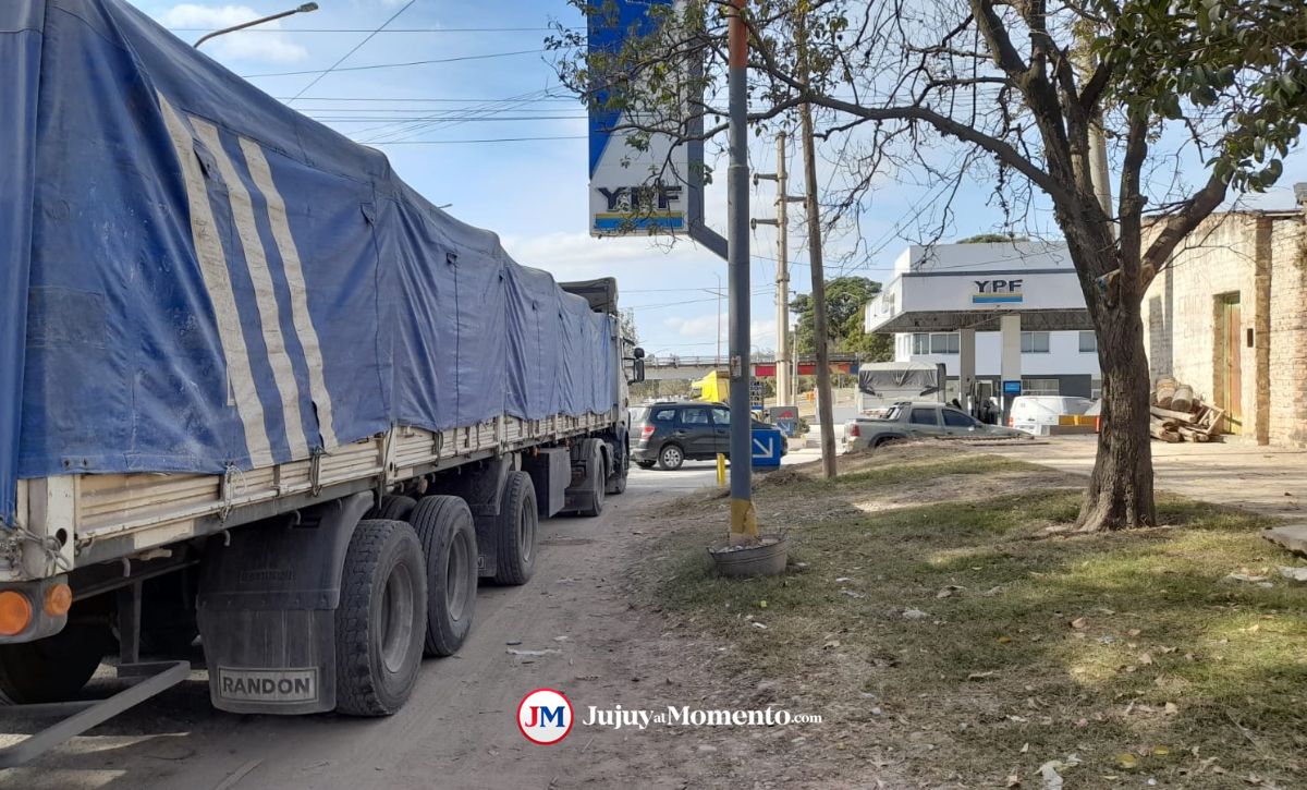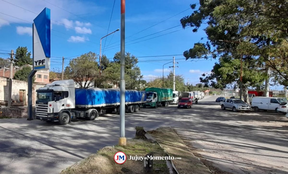 Específicamente en Palpalá, siguen las larguísimas filas de productores y camioneros que pierden horas de su trabajo en busca de combustible.