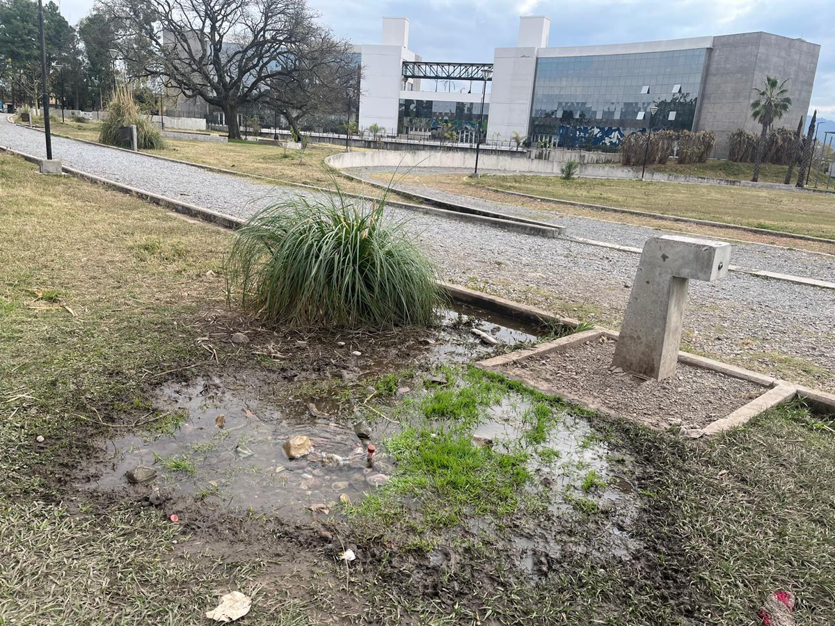 “La pérdida de agua está permanente en el sector que es parte de Malvinas, pierde por todas partes el agua y no lo solucionan hace rato, ya van a ser de dos a cuatro años que está así”, expresó un residente que se encarga de mantener en condiciones la plaza.