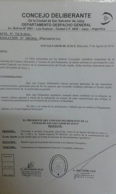 Por tal motivo se emitió una resolución desde presidencia confirmado la convocatoria para tratar este único tema.