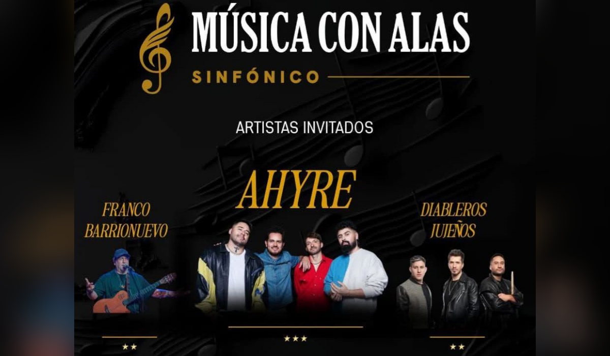 La Orquesta “Música con Alas” llevará adelante un concierto solidario con el objetivo de recaudar fondos. Para ello, convocó a tres grandes grupos y artistas: Ahyre, Franco Barrionuevo y Diableros jujeños.