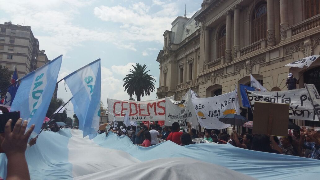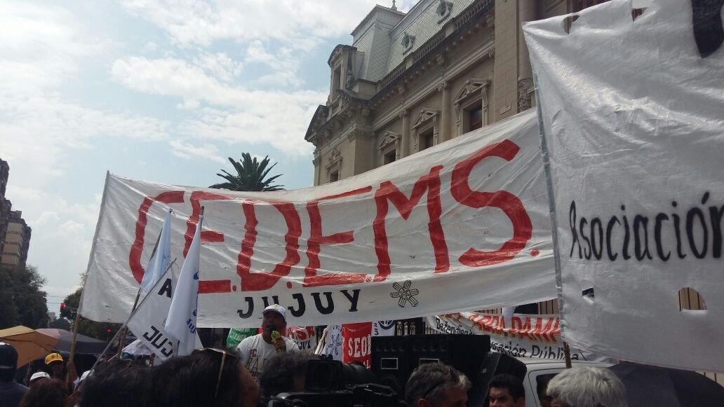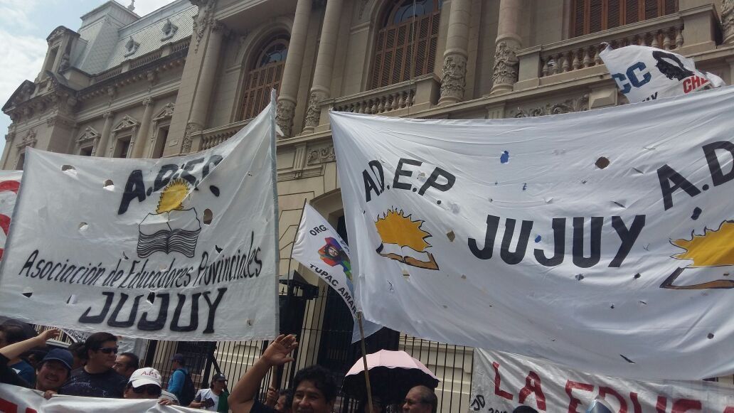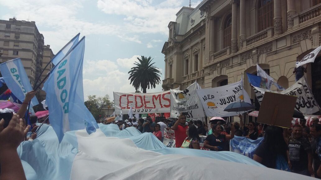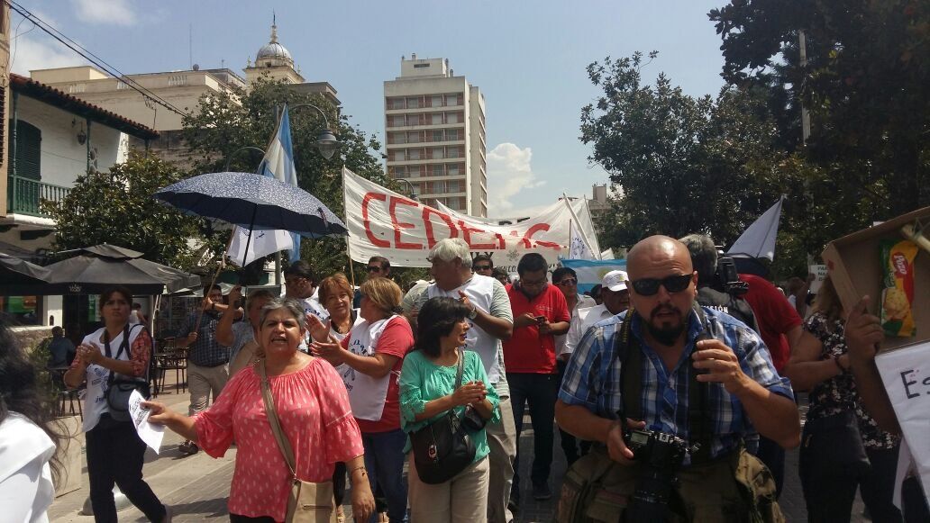 Arribaron a Casa de Gobierno las filas de docentes, tanto de Cedems como de Adep, que se sumaron al paro de 48 hs.