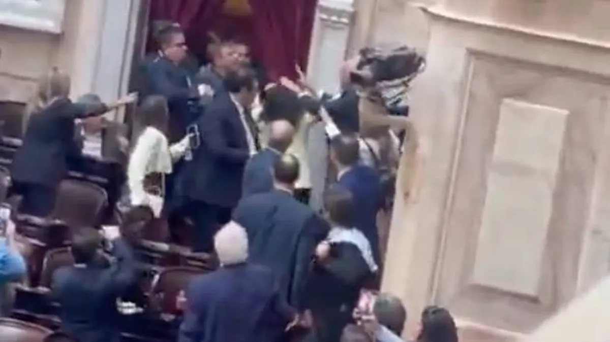 En medio del caos que tuvo lugar en las inmediaciones del Congreso por la marcha de jubilados, los diputados del peronismo, representantes del oficialismo y libertarios "blue" protagonizaron una fuerte reyerta al interior del Parlamento. Ocurre que en horas de la tarde, luego de varias horas de debate en las que la oposición logró aprobar la creación de una comisión investigadora de la estafa cripto $LIBRA, el sector kirchnerista, de la mano de Victoria Toloza Paz, fue por más y llevó al recinto dos nuevas iniciativas.