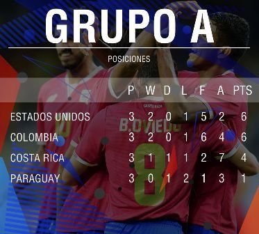 Tras la sorpresiva derrota frente a Costa Rica, Colombia se quedó en el segundo lugar detrás de Estados Unidos.