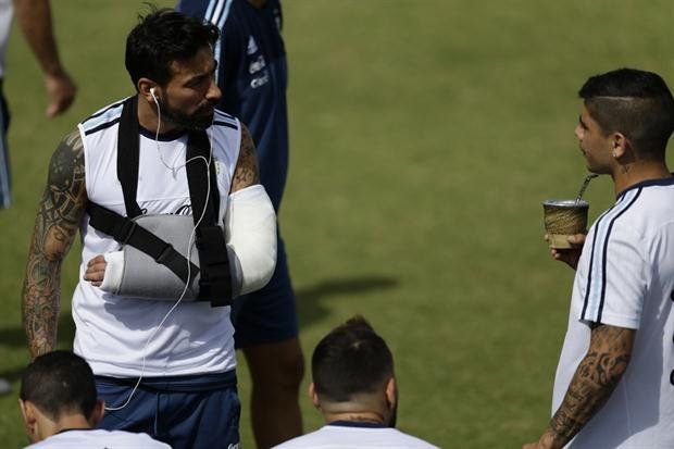 "Como informó el cuerpo médico de la Selección, tuve una luxofractura en mi codo izquierdo y me tendré que operar los próximos días", escribió el Pocho en Twitter.