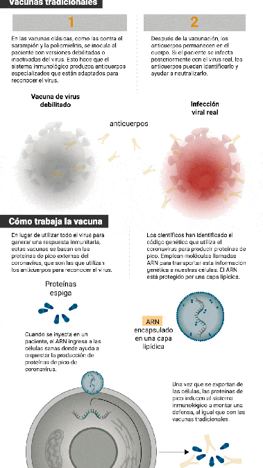 La vacuna de Pfizer está basada en la tecnología del ARN mensajero, que lleva instrucciones de ADN para que las células del cuerpo humano generen ciertas proteínas protectoras. La misma comenzó sus ensayos en Alemania a fines de abril y en EEUU a principios de mayo del 2020.