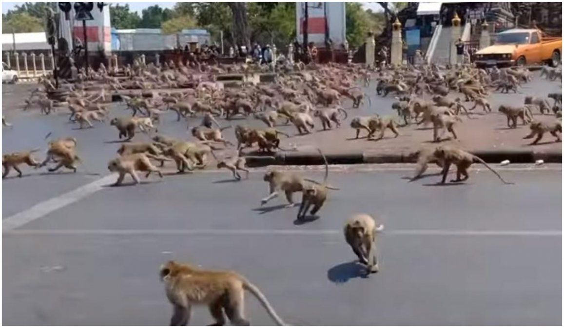 - La disminución del turismo por coronavirus ocasionó que los simios salgan desesperados a buscar comida.