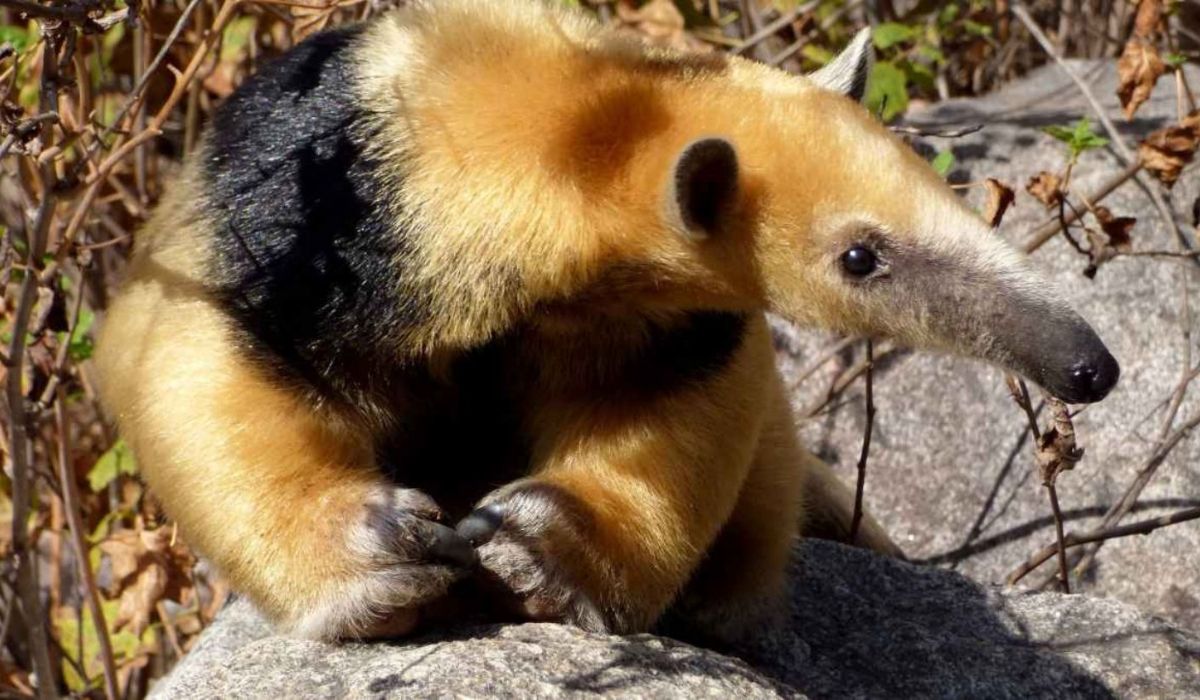 Se alimenta de hormigas, termitas y abejas. El mamífero utiliza sus garras para romper nidos de insectos o para defenderse.