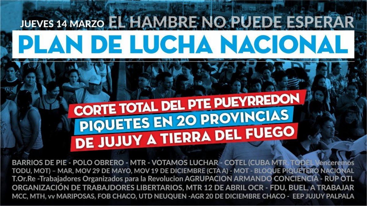 Desde la cúpula de Barrios de Pie, se llamó a movilizar en veinte provincias “desde Jujuy hasta Tierra del Fuego porque el hambre no puede esperar” según reza el lema del plan de lucha.