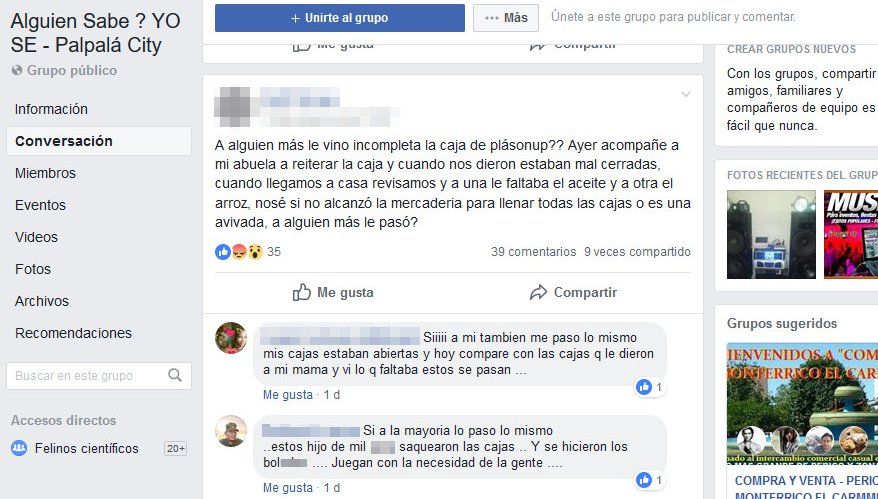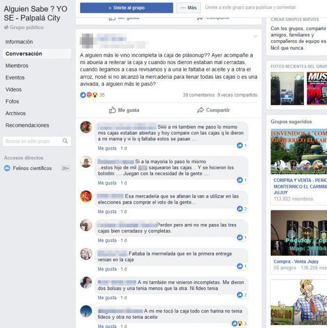 En la página, “Alguien Sabe ? YO SE - Palpalá City”, una mujer consultó si a “alguien más le habían otorgado cajas incompletas”.
