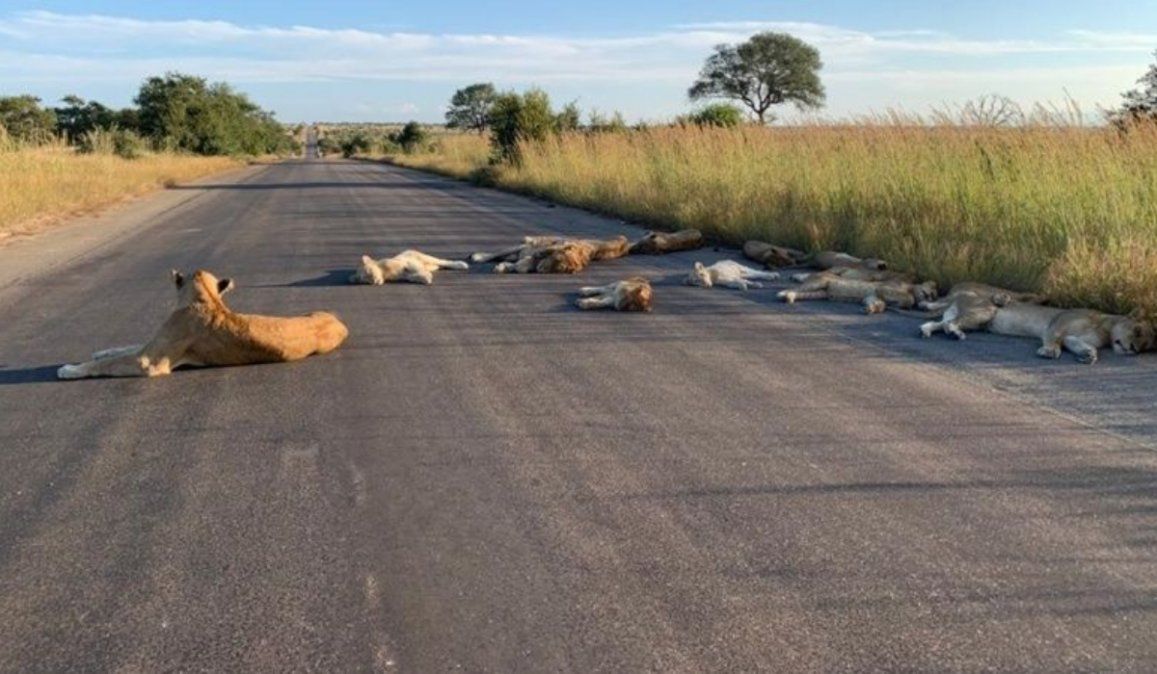 En Sudáfrica los leones no son la excepción. Con los turistas en cuarentena han salido de su hábitat natural para descansar en las carreteras, bajo el sol y sobre el asfalto caliente.