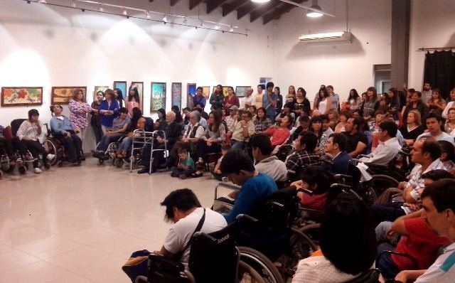 El salón lleno de visitantes, familiares y amigos, generó un clima de calidez en el que los artistas, protagonistas de la muestra, se mostraron emocionados y expectantes por compartir sus obras, las cuales forman parte de un proceso de trabajo que se realiza en el centro de capacitación laboral de la institución.