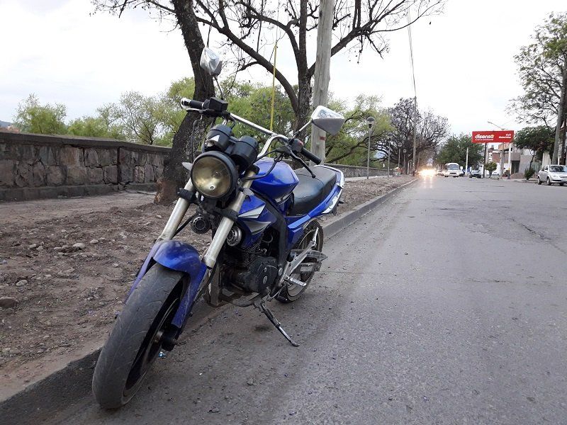 Una motocicleta marca Mondial, de color azul, al parecer de 250 cilindradas, estilo de ciudad, lleva casi 20 horas abandonada sobre avenida Hipólito Irigoyen al 1.200.