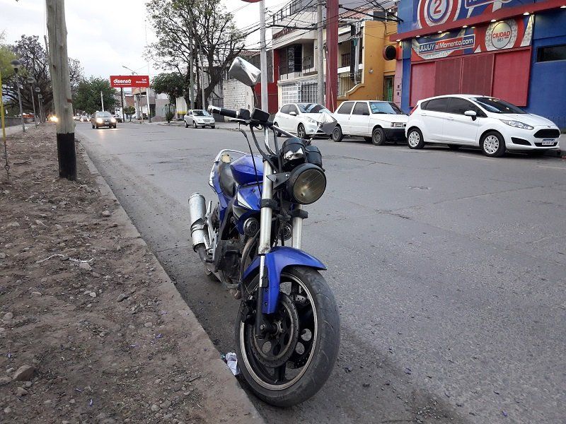 Una motocicleta permanece abandonada, mal estacionada, desde la madrugada del domingo sobre avenida Hipólito Irigoyen al 1.200. Transcurrió más de 20 horas sin que nadie la mueva del lugar.