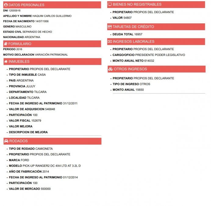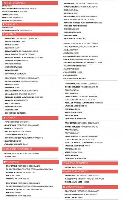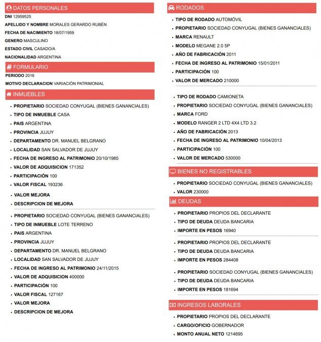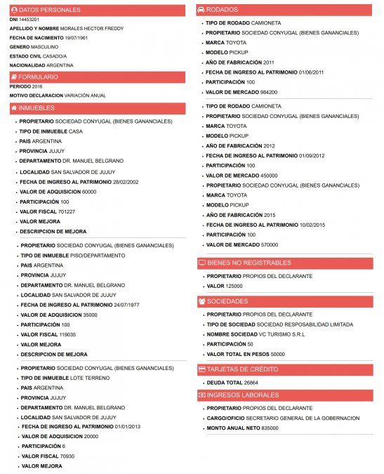 Ni el gobernador Morales, ni su vice Carlos Haquim, ni ningún integrante del gabinete provincial han cumplido con la obligación de mostrar la evolución de su patrimonio, pese a que el plazo venció hace dos semanas; las últimas declaraciones juradas publicadas en la web de la oficina anticorrupción datan de 2016.