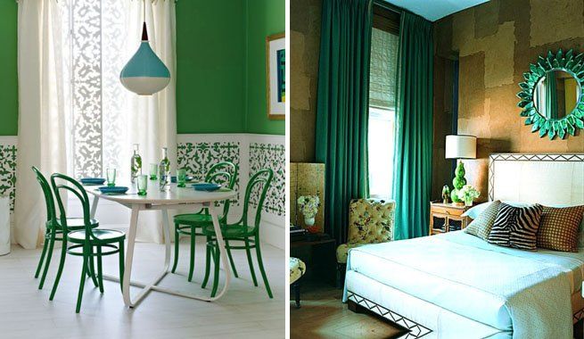 Debido a la sensación de paz ya hemos comentado antes, el color verde se emplea frecuentemente para pintar las paredes de los dormitorios. Si se trata de la habitación de los niños, la tonalidad que se emplea es más brillante y viva mientras que para el dormitorio de los adultos se suele optar por el verde claro o bien el verde botella combinado con otras tonalidades.