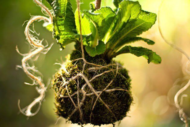 Kokedama es una esfera compuesta por musgo, turba, arcilla y arena de río que se crea rodeando las raíces de la planta que elijamos.