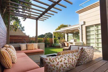 Cubrir el suelo con césped, aunque sea trate de césped artificial, nos encanta, también es una buena idea colocar un bonito suelo de madera. Es mucho más limpio, la verdad, además, podremos añadir una barbacoa y una pequeña mesa para poder disfrutar de una velada perfecta o bien para colocar la carne antes de ponerla en esa hermosa barbacoa.