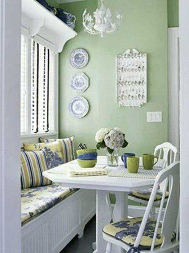 Para decorar la cocina bajo este esquema, la combinación de colores que componen el espacio usualmente es blanca, ya sea en las paredes o en los gabinetes de cocina. Para adquirir el toque femenino y delicado se incorporan colores pasteles como el verde, celeste o amarillo. Estas tonalidades claras ayudan a que la cocina luzca más iluminada también.