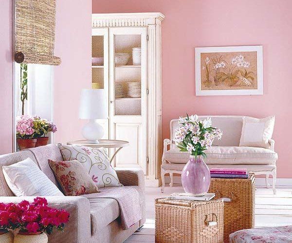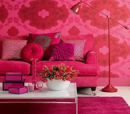Por ahí podemos encontrar decoraciones donde el color rosa puede transformar a un salón en una casita de muñecas. Si pretendes compartir este espacio debes utilizarlo con prudencia.