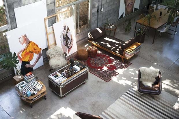 Eloisa desplegó su taller con un ambil - hecho a medida por "Mamut", un hacedor de ambiles - y una mesa auxiliar con rueditas, repletos de recortes, pinceles y acrílicos de colores. El chaise longue es un hallazgo del Mercado de Pulgas y genera un límite virtual hacia el comedor, donde un retrato de Barack Obama se roba todas las miradas. La cocina está escondida detrás de un box de madera, que le da calidez a la estética general. Esta no es la foto diaria: cuando ella pinta o sus hijos juegan, nada queda en su lugar. "Me acostumbré a trabajar en medio del bardo. Dicen que el verdadero zen es el que puede concentrarse en medio de la ciudad.