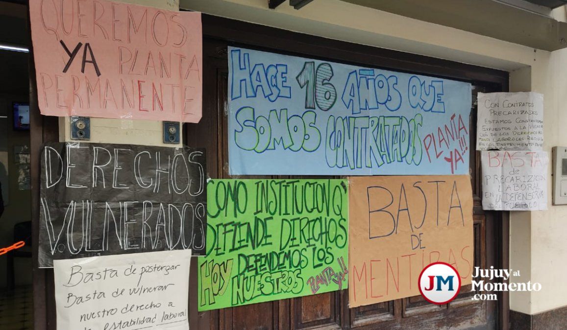 En la mañana de este lunes se encuentran realizando una medida de fuerza en la sede de Arenales 1219, sin atención al público. Los trabajadores señalan que se trata de una situación paradójica en la Defensoría que es un organismo de referencia en la "defensa de los derechos y garantías de la sociedad conjunta, pero que carece de los mismos términos para su propia estructura".