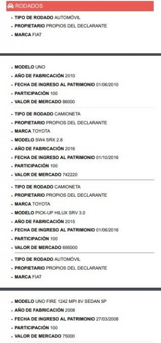 Además, en esa misma declaración de bienes, el ex diputado asegura ser un trabajador independiente que administra salones de fiestas y taxis. Entre otros bienes, declara dos vehículos de alta gama: una camioneta Toyota Hilux modelo 2015 y una camioneta SW4, de la misma marca, modelo 2016. El valor de ambos vehículos supera el millón y medio de pesos.