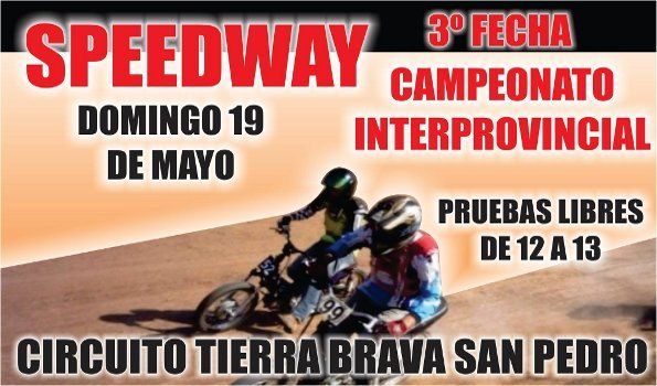 La Coordinación de Deportes sobre Ruedas dependiente de la Municipalidad de San Pedro informa que este domingo se llevará a cabo la Tercera Fecha del Campeonato Interprovincial de Speedway.