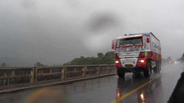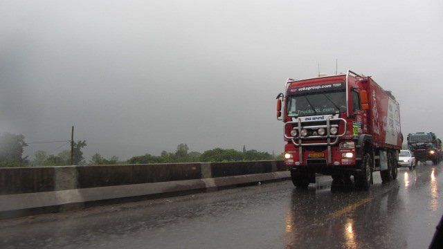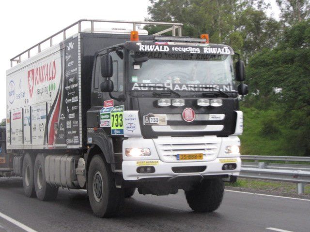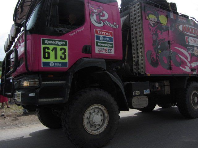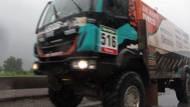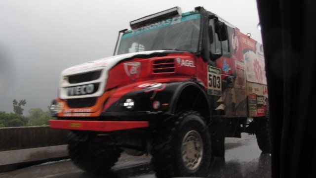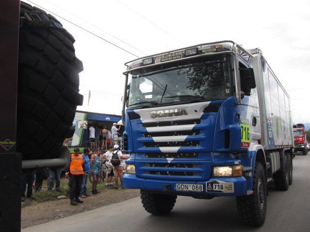 En camiones, el argentino Federico Villagra, con Iveco, confirmó su notable actuación en esta primera parte con un tercer puesto de etapa, detrás del chechenio Martin Kolomy (Tatra) y del holandés Stacey Hans (Man), que repite en la general, a 6h 4m 36s del piloto holandés, el actual líder.