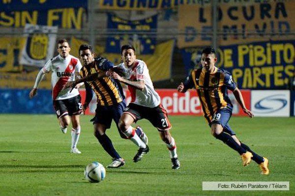 En el primer encuentro de 16vos. de final de la competencia, el conjunto de Eduardo Coudet se impuso con los tantos conseguidos por Marco Ruben (Pt. 27m., de penal) y Jonás Aguirre (St. 45m.). El árbitro Federico Beligoy, de floja tarea, expulsó a los defensores de River, Jonatan Maidana (Pt. 44m.) y Eder Alvarez Balanta (St. 16m.), y al mediocampista del conjunto rosarino, Damián Musto (St. 33m.)