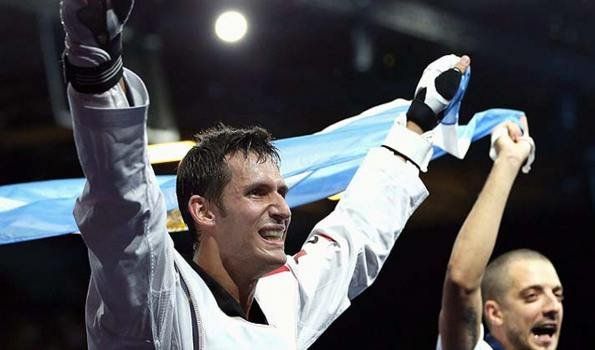 En ese combate de cuartos, Shakhbanov había ganado inicialmente, pero tras una protesta del argentino por fallas de los sensores, el ruso no se presentó a combatir nuevamente. Antes, Crismanich había vencido al chino La Ta y a Vladislav Larin (Rusia).