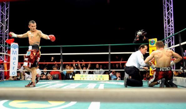 El púgil santafesino Marcos Maidana venció al retador ruso Petr Petrov y retuvo por primera vez el título superligero de la Asociación Mundial de boxeo (AMB), al aplicar un contundente nocaut, cuando promediaba la cuarta vuelta de una pelea desarrollada en el estadio de la Sociedad Alemana.