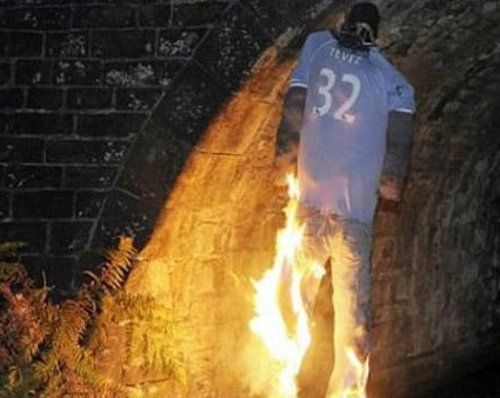 Hinchas ingleses, prendieron fuego a un muñeco de Tevez