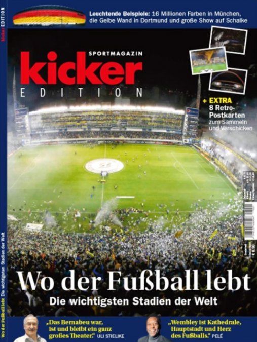 Al margen, en la tapa aparecen Uli Stielike y Pelé, hablando de los estadios de mayor importancia a nivel mundial. "El (Santiago) Bernabéu fue y sigue siendo un escenario muy duro", opinó el formador de juveniles de la selección alemana desde 1998 a 2006, mientras que el brasileño optó por otro: "Wembley es la catedral, capital y corazón del fútbol".