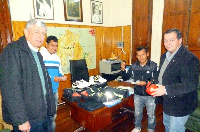 Junto con junto el director de Deporte Social Eduardo Silva, le entregaron indumentaria deportiva y una plaqueta recordatoria a Juan Jurado, quien recientemente se consagró campeón en categoría Mosca.