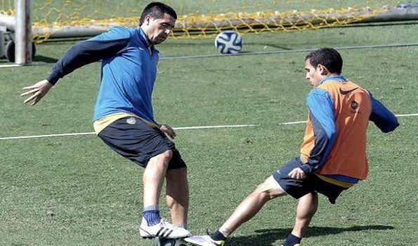 Riquelme, tras perderse el triunfo sobre All Boys en Floresta por un golpe en el pie izquierdo, entrenó de manera liviana durante martes y miércoles, y hoy condujo al equipo en la práctica.