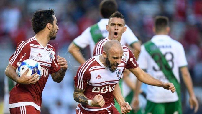River Plate le ganó a Banfield por 3 a 1 en encuentro jugado en el estadio Monumental por la segunda fecha de la Superliga de fútbol, con anotaciones de Javier Pinola (17 m.), Gonzalo Martínez (42m. PT) e Ignacio Scocco (27m. ST); mientras que Renato Civelli (2m. PT) había abierto el marcador, resultado que le permitió al conjunto "millonario" llegar a la cima de las ubicaciones del torneo.