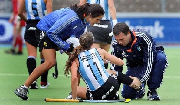 La jugadora argentino de hockey sobre césped, Carla Rebecchi, sufrió este jueves una lesión en los entrenamientos que el equipo realiza en Londres.