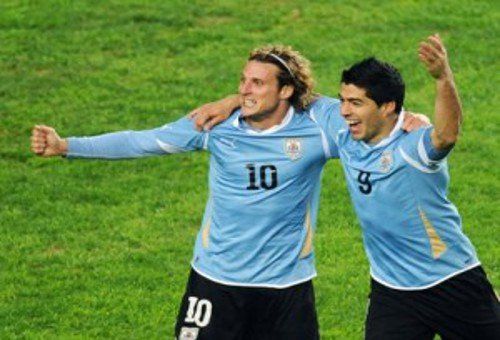 Uruguay: Fernando Muslera; Martín Cáceres, Diego Lugano, Diego Godín; Maximiliano Pereira, Diego Pérez, Egidio Arévalo Ríos, Álvaro Pereira; Diego Forlán; Edinson Cavani y Luis Suárez. DT: Oscar Tabárez.