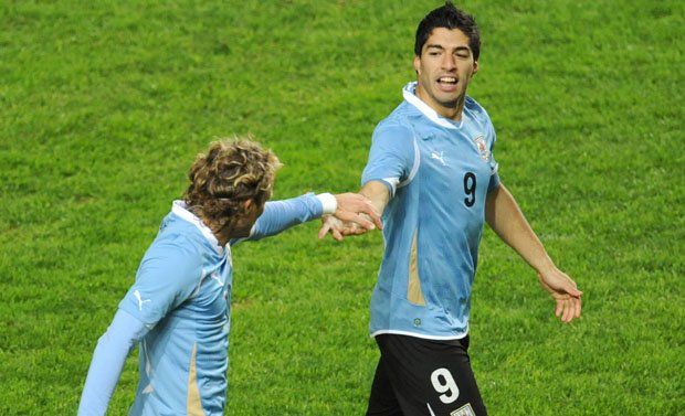 Primero, el arquero Raúl Fernández no pudo retener el balón tras un tiro de media distancia de Forlán, el rebote le quedó a Luis Suárez, y el delantero central de Uruguay no falló y puso el 1 a 0.