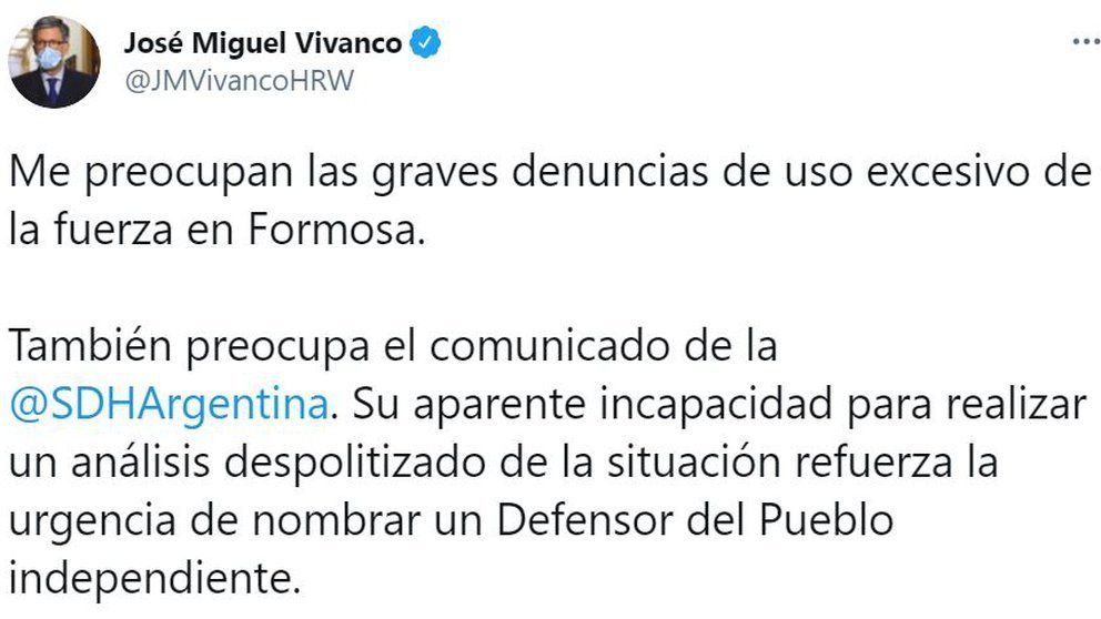 José Miguel Vivanco, responsable de la Dirección Ejecutiva de la organización internacional dedicada a la defensa y promoción de los derechos humanos, Human Right Watch, que tiene sede en Estados Unidos, repudió la represión que se registró este viernes en Formosa y apuntó contra el Gobierno por su “aparente incapacidad para realizar un análisis despolitizado de la situación”.
