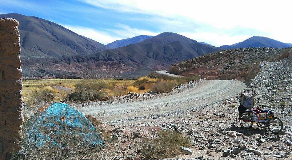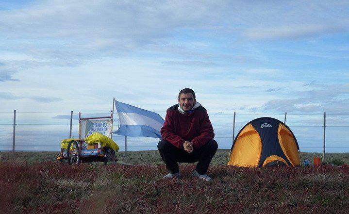La travesía, le costó 9 pares de zapatilla, 12 ruedas de las cuales 32 veces pinchó, 4 celulares, carpa y colchón. “Todo lo que salió de Ushuaia no llegó a La Quiaca. En la Patagonia era muy hostil el clima aún en el verano con temperaturas muy bajas, me despertaba y la carpa estaba congelada por la condensación. El viento una vez me rompió la carpa. El colchón, cuando estaba cruzando Chile se me lo voló. Hubo dos o tres días donde me tocaba dormir arriba de piedra o quedarme en lugares donde no me daba el viento. “Los anafes, todo se ha roto, pero lo que no se rompió fue la ilusión, que es lo que me deja contento”.