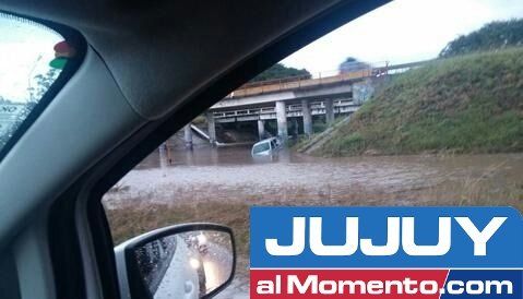 Al menos dos automóviles quedaron flotando en el agua luego de querer ingresar a la ciudad por el acceso norte debajo de la ruta 66.