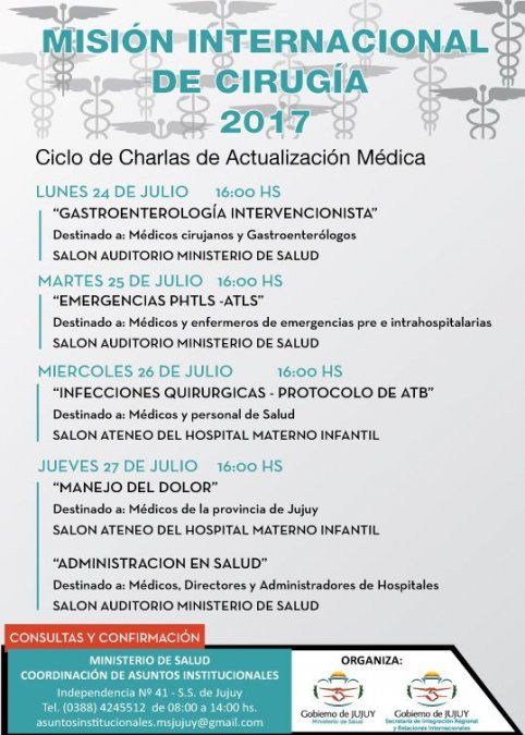 Por el término de 5 días, Jujuy recibirá a una importante delegación de profesionales de Estados Unidos para realizar cirugías laparoscópicas de avanzada. Más allá de la capacitación para nuestro profesionales de la Salud, implicará un servicio valioso para la población.
